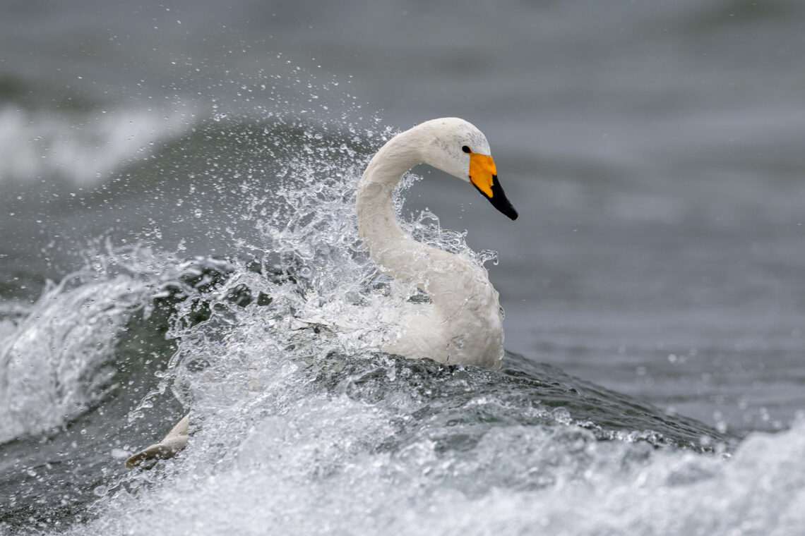 Wir können jederzeit vor oder nach dem Frühstück auf eigene Faust Fotos von Singschwänen unweit unserer Unterkunft machen.