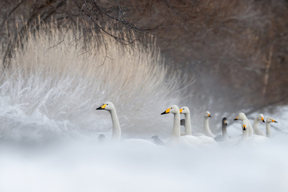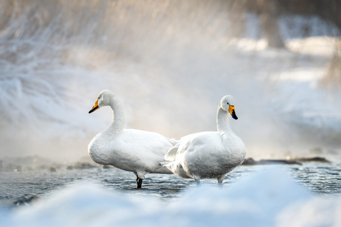 Nach dem Frühstück um 08:00 Uhr checken wir aus dem Hotel aus und verbringen den Vormittag mit weiteren Fotoaufnahmen der Rotkronenkraniche im Dorf Tsurui. Anschliessend fahren wir zum Kussharo-See und verbringen den Nachmittag bis etwa 16:30 Uhr mit Fotoaufnahmen von Singschwänen.